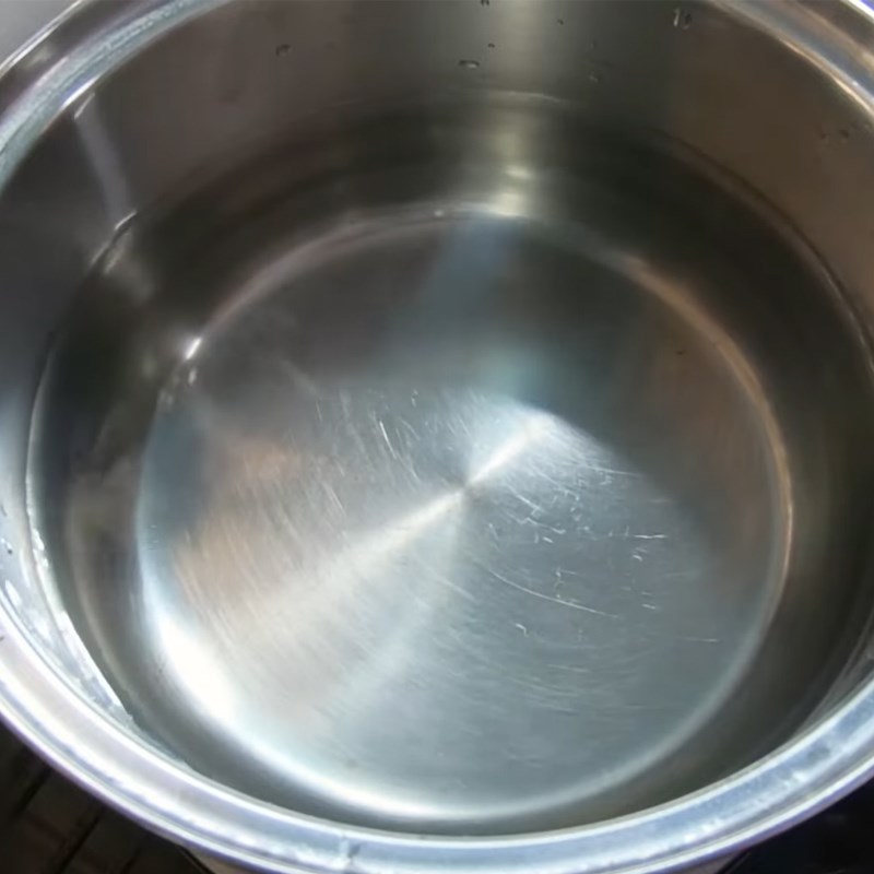 Đầu tiên, bạn cho 1 lít nước lạnh vào nồi rồi đổ 50gr bột sương sáo vào và dùng cây đánh trứng khuấy đều để bột được tan.